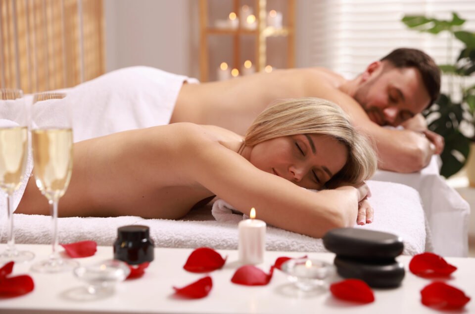 A couples massage is a shared experience. You relax in the same room with side-by-side treatments. Soft music plays. Aromatherapy and essential oils like rose, lavender, jasmine, or sandalwood fill the air.